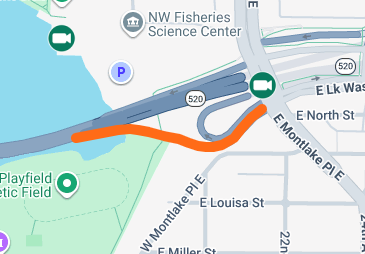 All traffic from I-5 entering eastbound SR 520 during these hours will pay the SR 520 Bridge Toll with this ramp closed. Those who do not want to pay the toll or who need access to Montlake Blvd. from I-5 must use alternate routes.